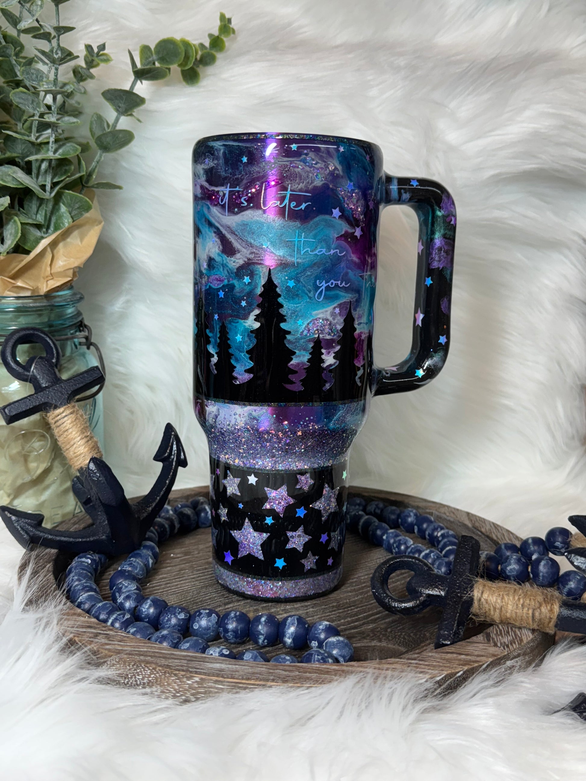 40 oz Northern Lights w/ peekaboo and glow stars/words